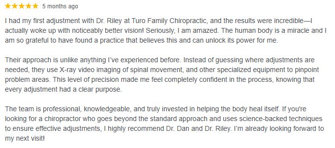 demonstrated measurable improvements in nerve system balance, correlating with her decreased symptoms and enhanced daily function. This case demonstrates how long-term spinal dysfunction can affect more than just posture and pain—it can influence overall health and quality of life. With specific chiropractic adjustments, this patient not only regained mobility and reduced pain but also experienced improvements she never expected, including better vision and increased energy.